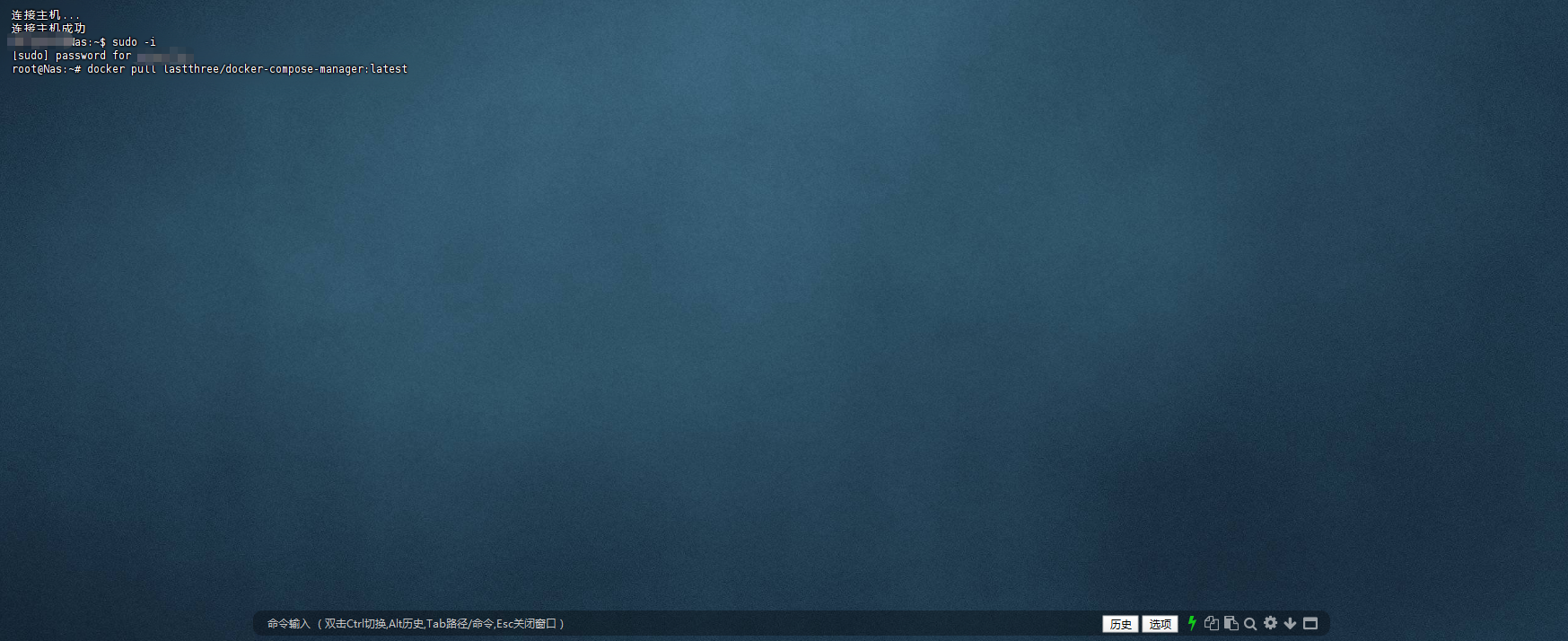 • 输入 sudo -i 输入飞牛密码,进入 root 权限,复制以下代码拉取镜像