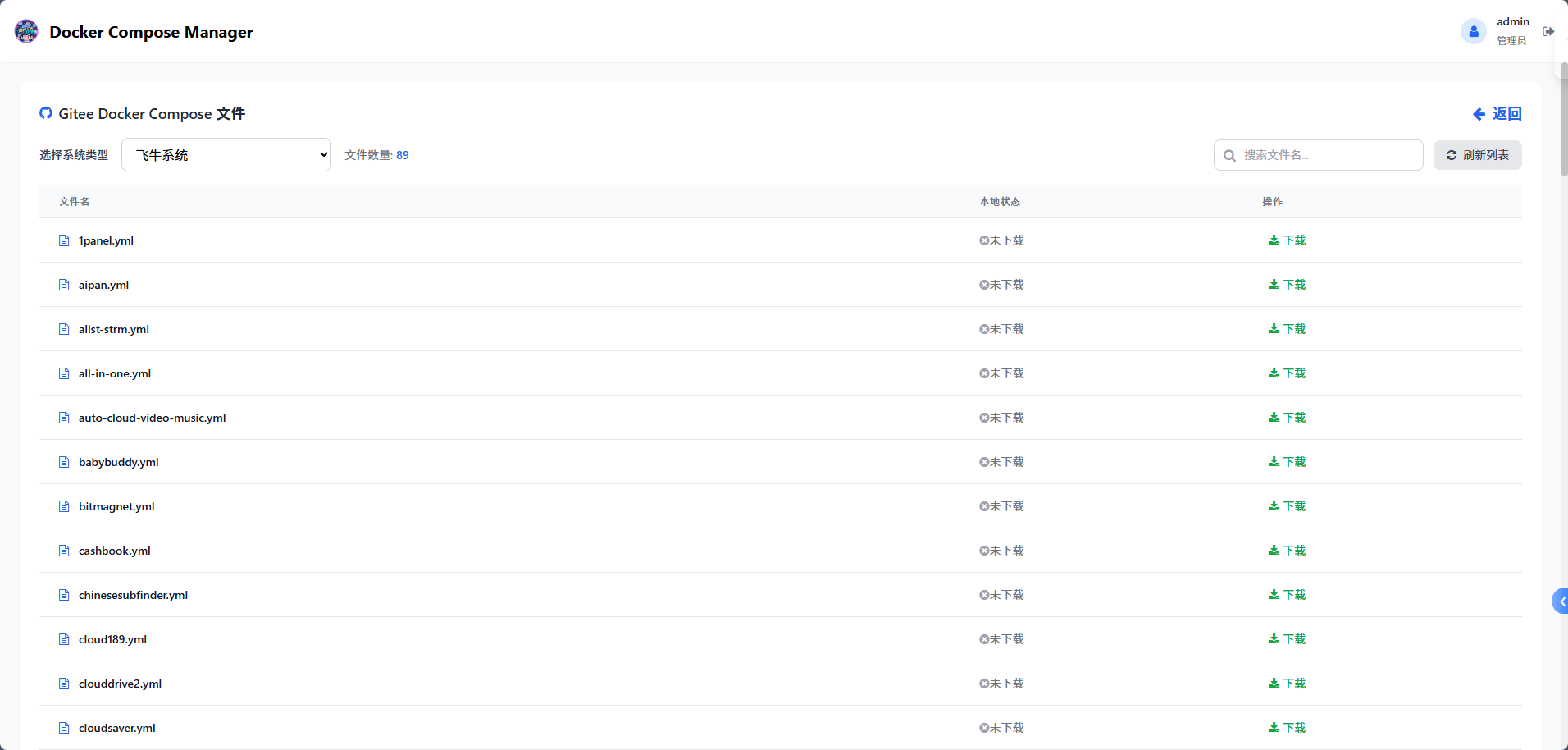 • 跳转到文件获取界面,选择系统类型,选择想要部署的容器,点击“下载”即可