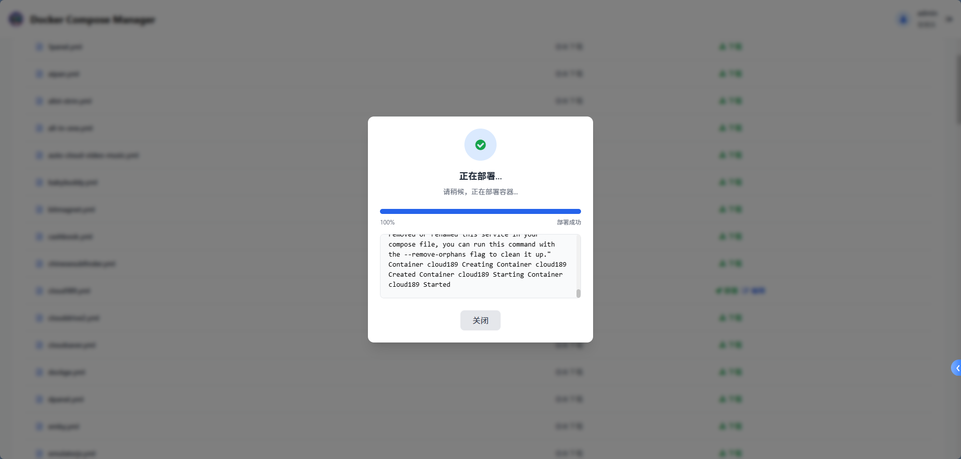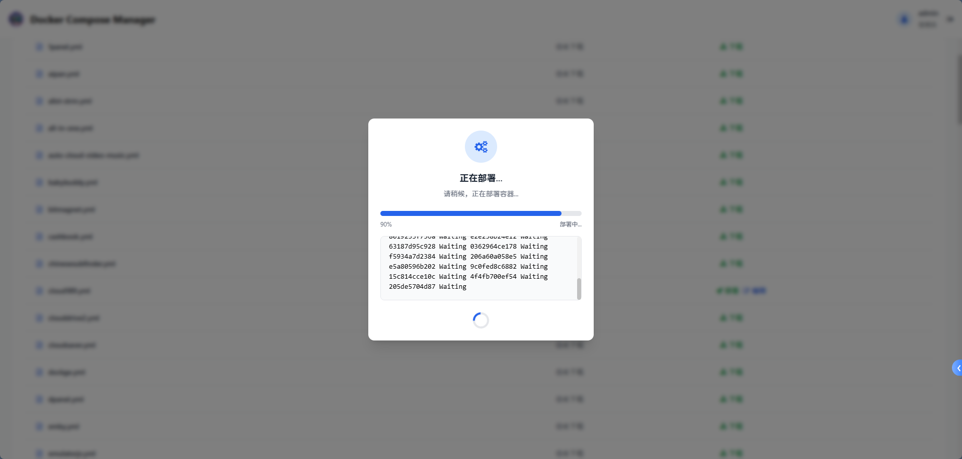 • 点击“部署”按钮后,会弹出部署日志,等待完成即可