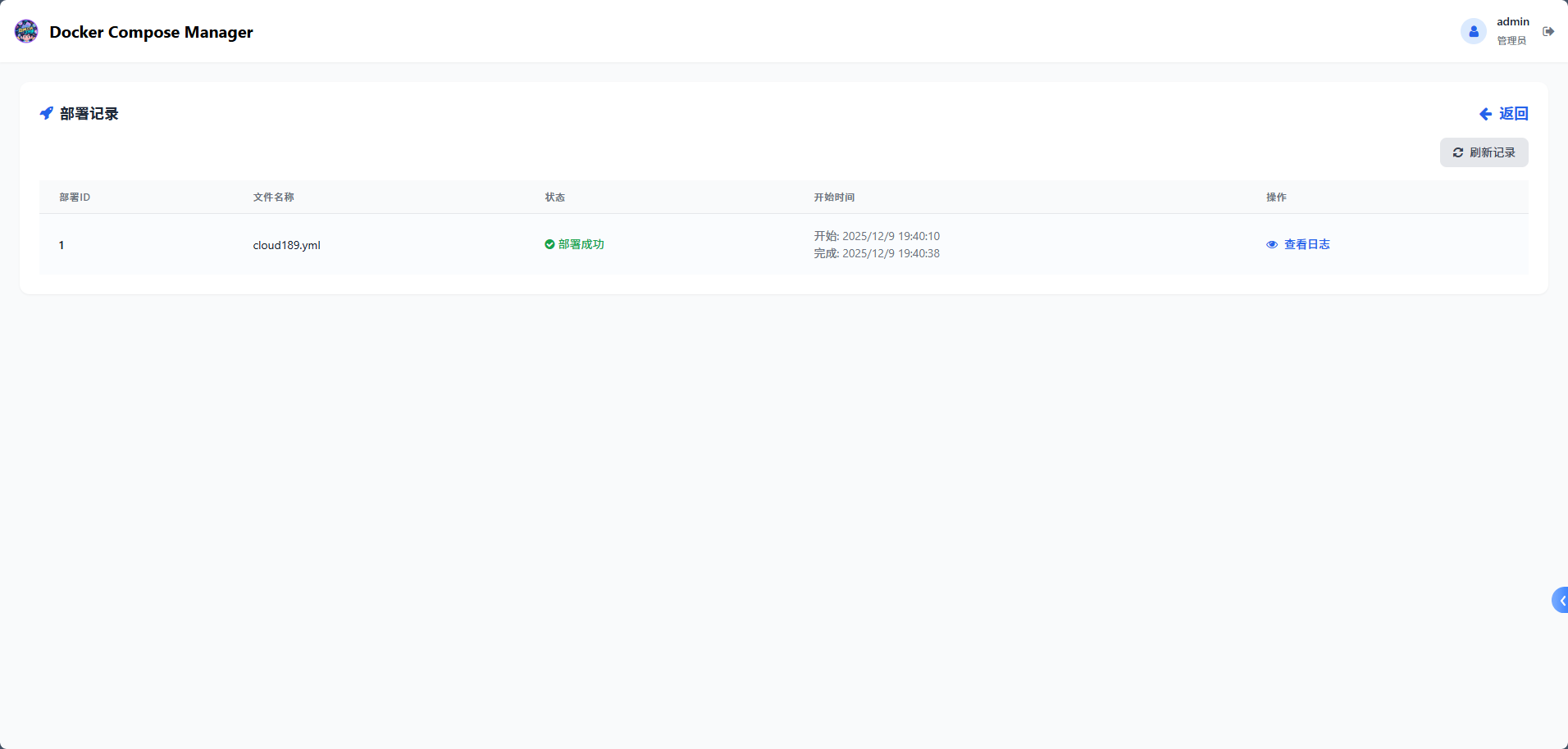 • 最后可以在主界面“查看部署记录”中,查看相关部署的日志和记录
